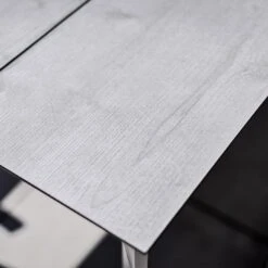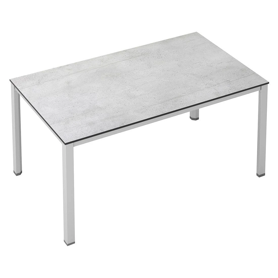 Als Material des Gestells dient wertiges Aluminium. Als klassische Design-Komponente fungiert das geradlinige Vierfußgestell. Die stabile und kratzfeste Tischplatte aus leicht zu pflegendem HPL-Kunststoffverbund ist im Besonderen für Gartenparties unter freiem Himmel und das Essen draußen wunderbar geeignet. Für ein stimmiges Gesamtbild erscheint die Platte in der Farbe Grau. Die rechteckige Form ermöglicht es Ihnen, den Gartentisch in Ecken und an Häuserwänden platzsparend einzusetzen.