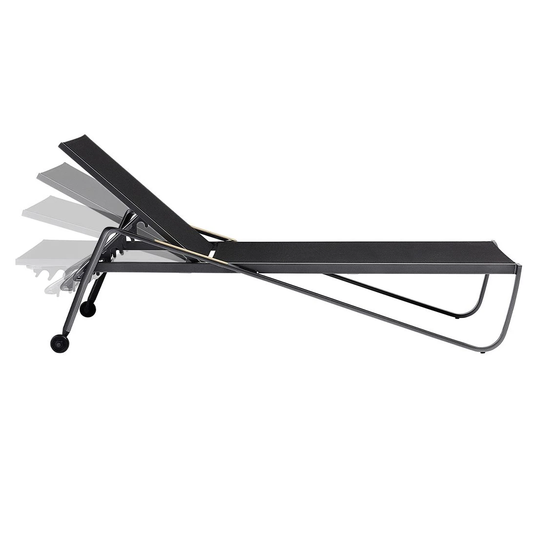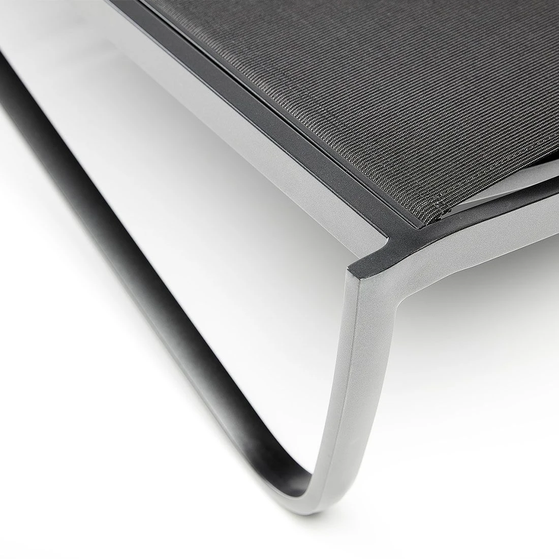 Für die Herstellung des Gestells wird hochwertiges und wetterfestes Aluminium verwendet. Für eine attraktive Optik ist das Gestell im Farbton Anthrazit gehalten. Die Sitzfläche wird mit Textilene bespannt. Dieses Material ist reiß- und wetterfest und zeichnet sich durch eine hohe Beständigkeit gegenüber Hitze und Frost aus. Darüber hinaus ist Textilene leicht zu säubern. Die Sitzfläche hat eine schöne Farbgebung in Charcoal.