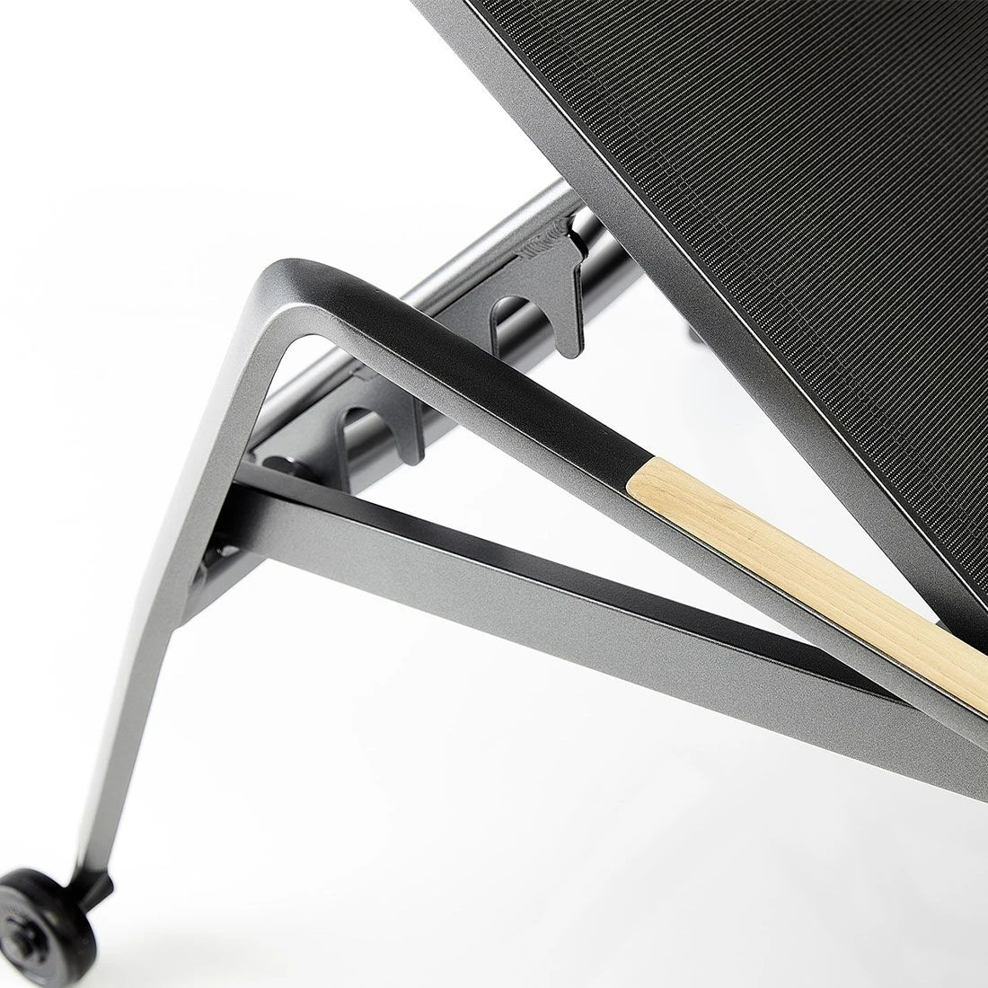 Das Kopfteil lässt sich bequem verstellen, damit Sie sich Ihre gewünschte Sitz- bzw. Liegeposition einfach aussuchen können. Im Handumdrehen den Standort der Liege wechseln? Kein Problem, denn dieses Liegenmodell ist rollbar und verfügt über praktische Räder. Auch wenn Sie mehrere Exemplare dieses Modells besitzen, können Sie diese äußerst kompakt und platzsparend aufbewahren, indem Sie diese stapeln. Damit Sie sich bequem zurücklehnen können, stellen Sie Ihre Wunschposition ganz einfach mittels Rasterschiene an der Rückenlehne ein.