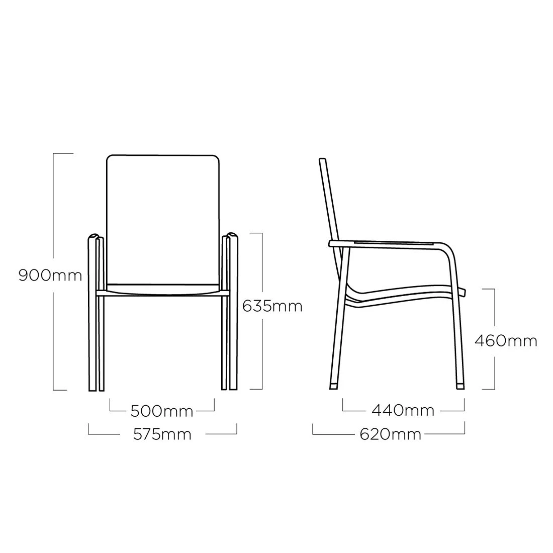Die robusten Metallgestelle aus Aluminium sind pflegeleicht und garantieren gleichzeitig eine hohe Stabilität. Darüber hinaus gewährleistet dieses leichte Material, dass Sie die Möbel bequem transportieren können. Ein weiteres Highlight der Sitzmöbel ist die Bespannung der Sitzflächen mit Textilene. Dieses Material zeichnet sich durch eine hohe Robustheit gegenüber Hitze und Frost aus und ist leicht zu reinigen.