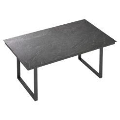 Das Gestell des attraktiven Tisches besteht aus Aluminium. Klassisch aus vier Tischbeinen besteht das Gestell des Tisches. Die formvollendete HPL-Tischplatte ist nicht nur ein optischer Hingucker, sondern besitzt zudem auch eine besonders stabile und absolut kratzfeste Oberfläche, die unterschiedlichen Belastungen trotzt. Für ein elegantes Gesamtbild erscheint die Platte in der Farbe Marmor Grau. Die rechteckige Form ermöglicht es Ihnen, den Gartentisch in Ecken und an Häuserwänden platzsparend einzusetzen.