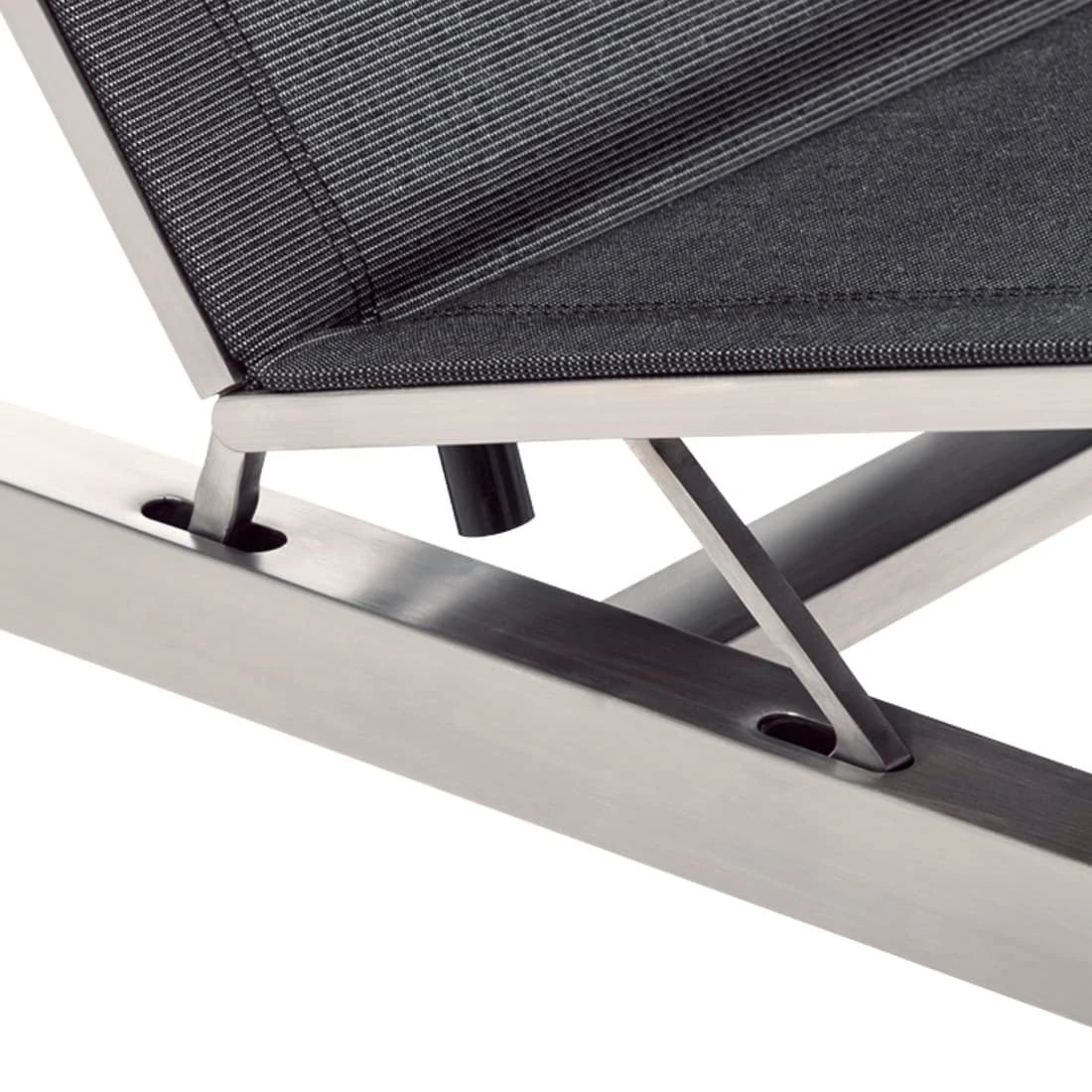 Das Gestell wird aus hochwertigem und rostfreiem Edelstahl hergestellt. Dieses Material gewährt der Gartenliege eine hohe Standfestigkeit und Stabilität. Für eine attraktive Optik ist das Gestell im Farbton Silber gehalten. Die Sitzfläche wird mit Textilene bespannt. Dieses Material ist reiß- und wetterfest und zeichnet sich durch eine hohe Beständigkeit gegenüber Hitze und Frost aus. Darüber hinaus ist Textilene leicht zu säubern. Damit die Gartenliege optisch ansprechend ist, sind die Sitzfläche und der Bezug im Farbton Grau-Meliert gehalten.