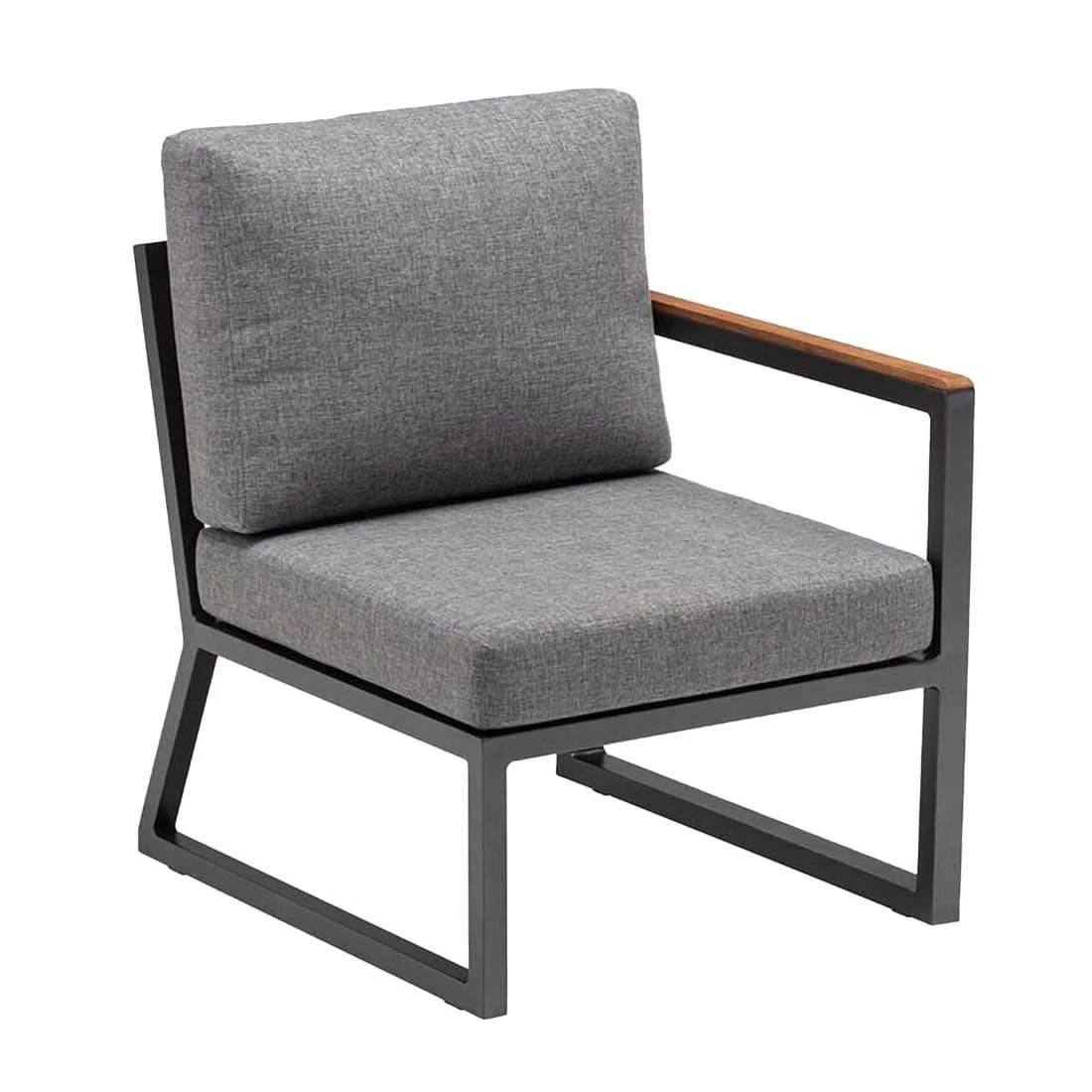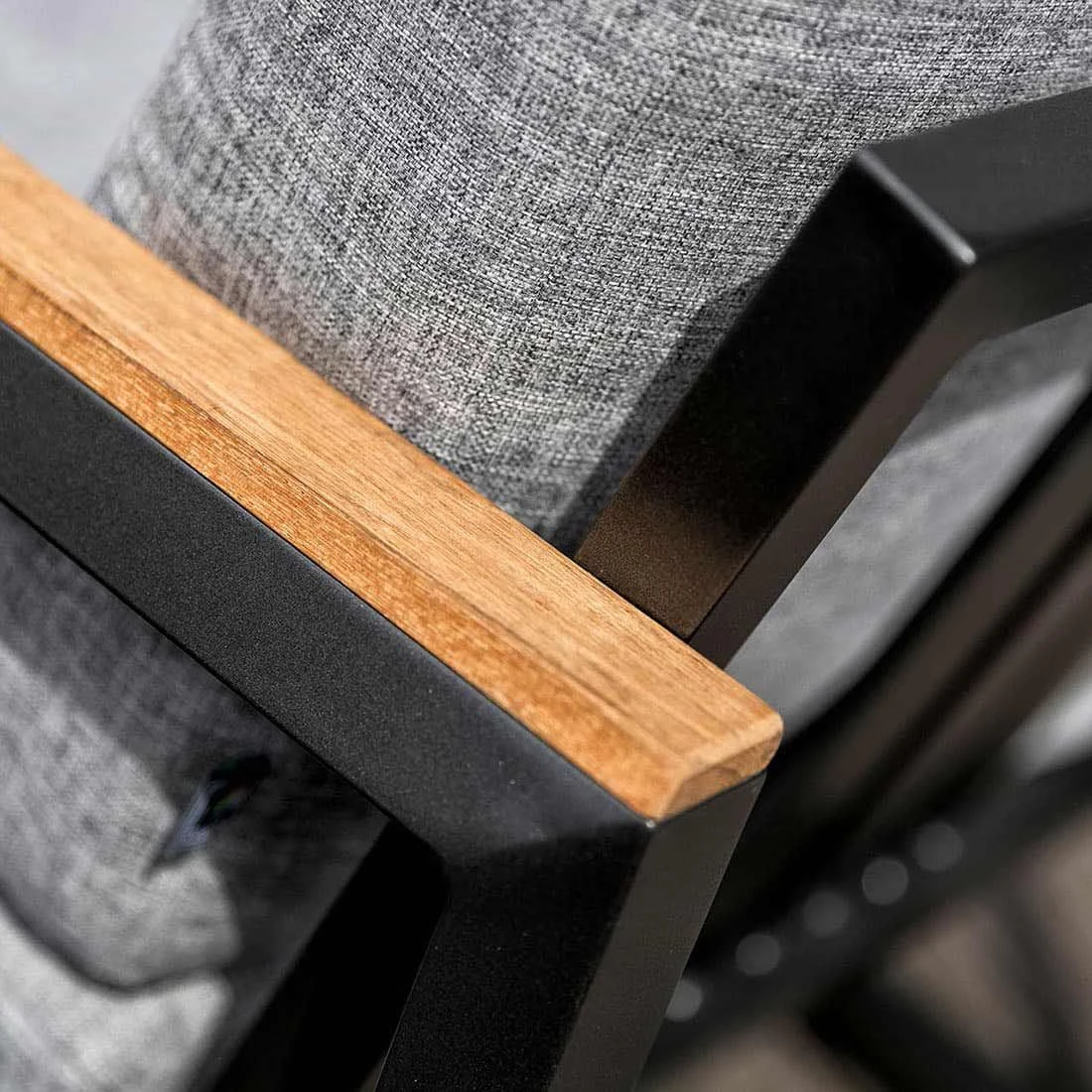 Als Gestellmaterial hat der Hersteller qualitativ hochwertiges Aluminium gewählt. Optisch begeistert das Gestell in der Farbe Anthrazit. Die Sitz- und Rückenfläche ist aus dem Marken-Outdoorstoff Olefin gefertigt. Das Material verbindet eine angenehme Stoffoberfläche mit hoher Witterungsbeständigkeit. Denn sowohl Sonne als auch Regen können dem robusten Outdoor-Stoff kaum etwas anhaben.