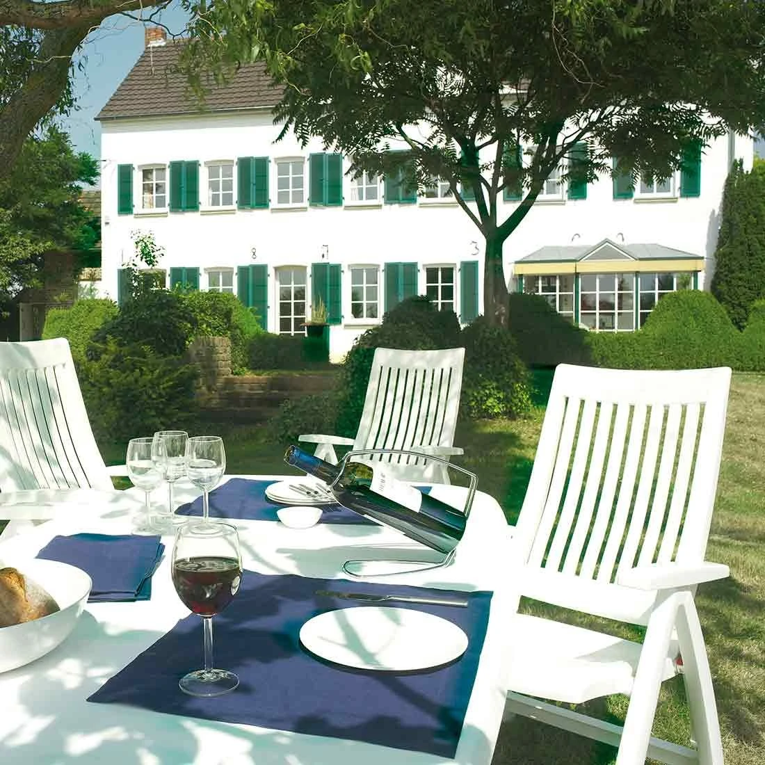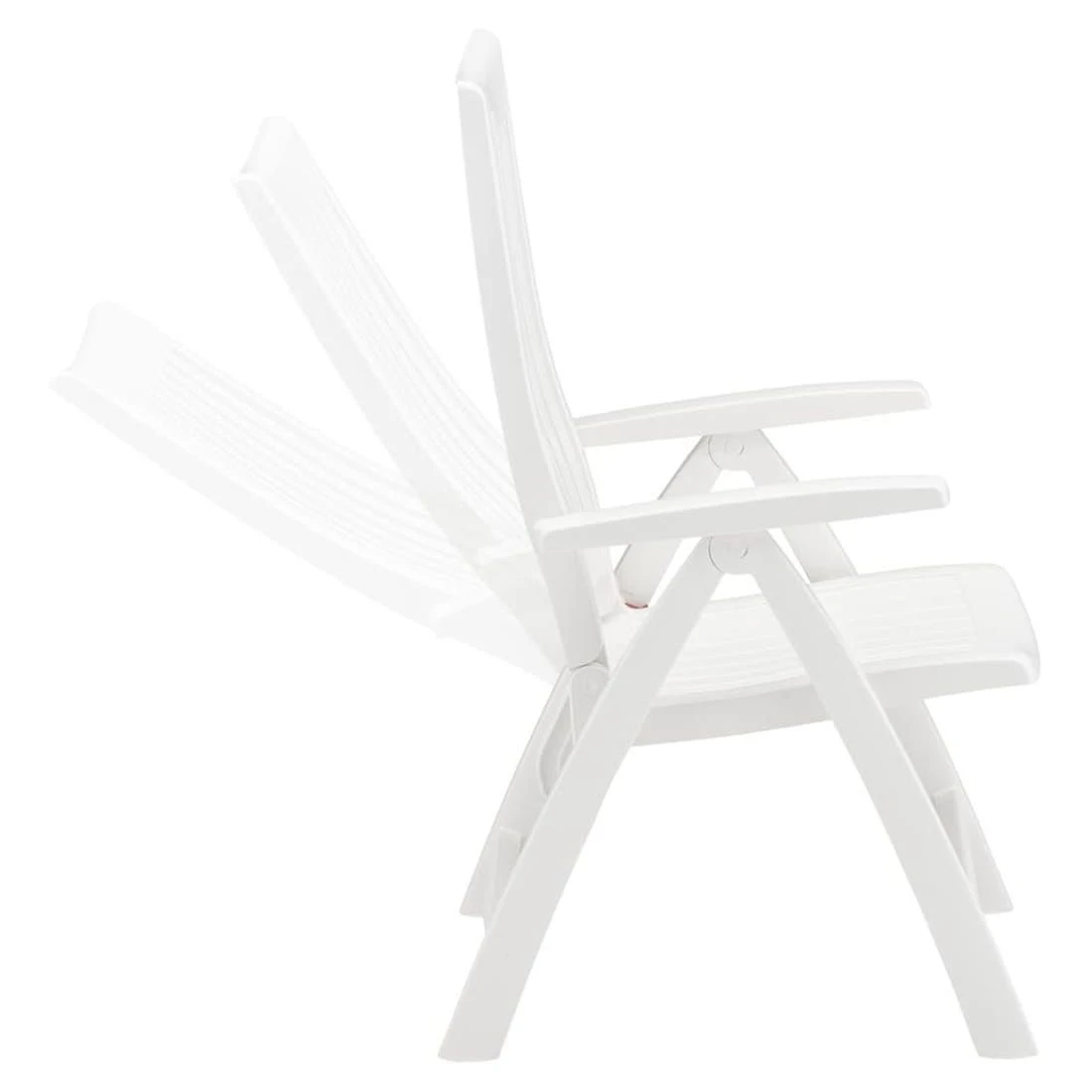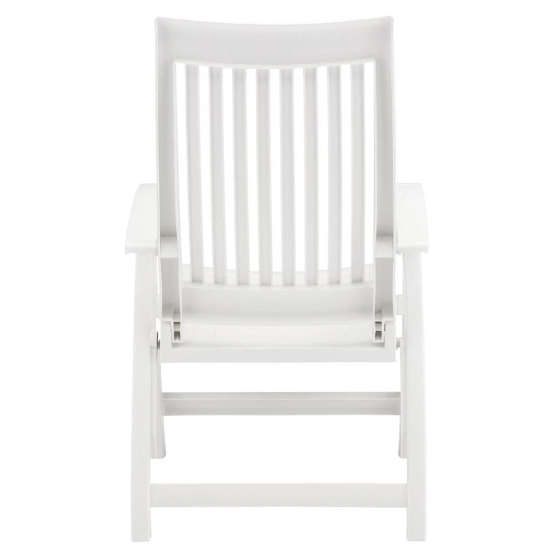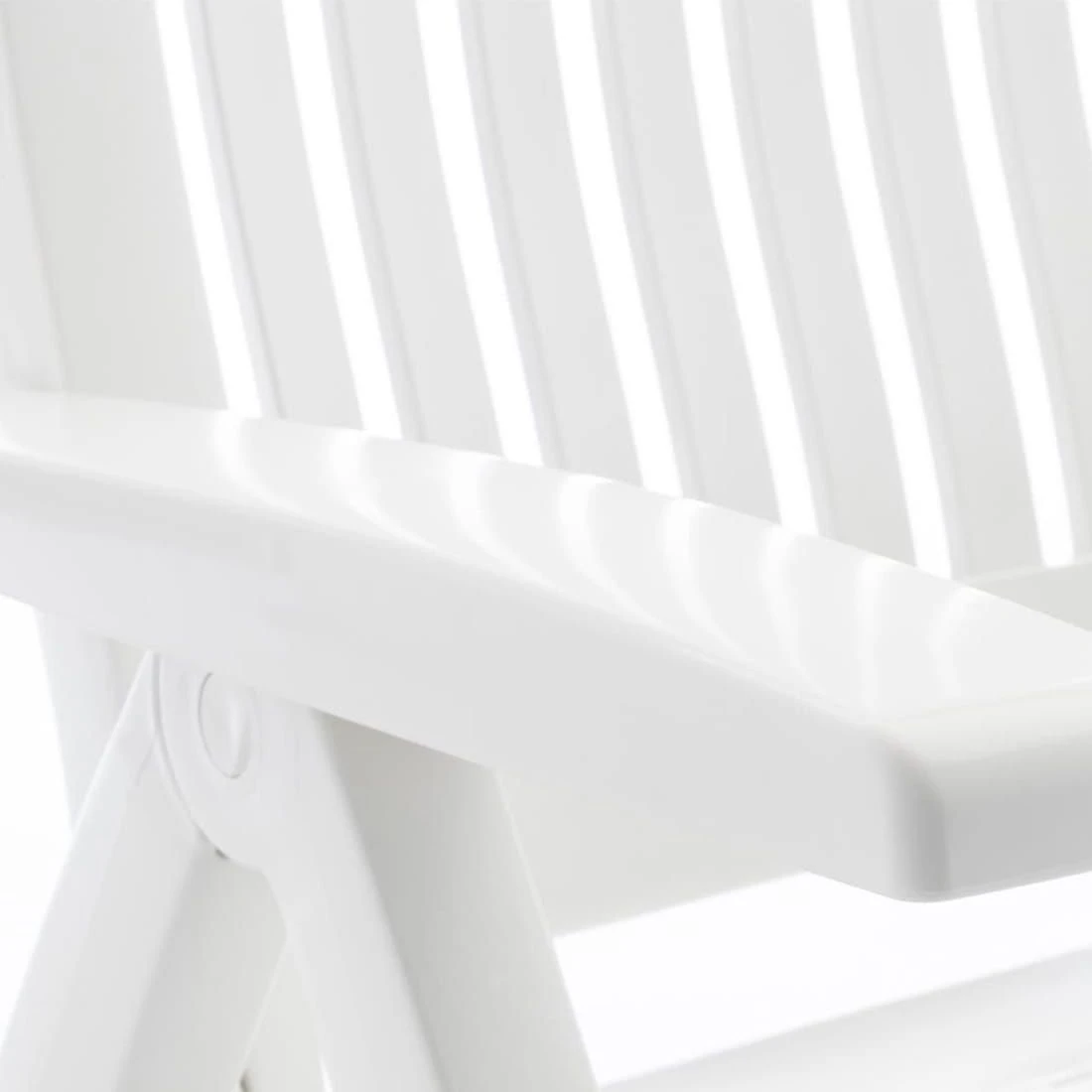 Der Klappsessel begeistert damit, dass das Gestell und die Sitzfläche aus Kunststoff gefertigt sind. Dies erzeugt nicht nur ein elegantes, sondern auch einheitliches Bild des attraktiven Möbels. Für ein perfekt stimmiges Gesamtbild sorgt die einheitliche Farbgebung in stilvollem Weiß.