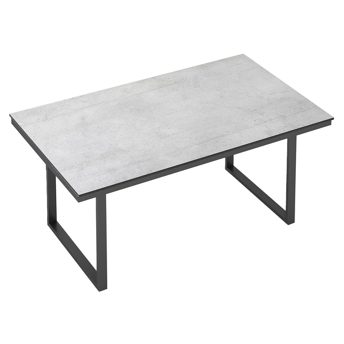 Mit seinem Gestell-Material Aluminium zählt der Gartentisch Skate zu den modernen Tischmodellen, die sich im Garten und auf der Terrasse komfortabel aufstellen und bewegen lassen. Der moderne Look des Gartentisches wird durch die attraktiven Kufen nochmals betont. Die massive Tischplatte aus leicht zu pflegendem HPL-Kunststoffverbund ist im Besonderen für Veranstaltungen unter freiem Himmel und Mahlzeiten draußen außerordentlich gut geeignet. Farblich ist die Tischplatte in einem schönen Grau gehalten. Die rechteckige Form ermöglicht es Ihnen, den Gartentisch in Ecken und an Häuserwänden platzsparend einzusetzen.