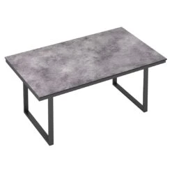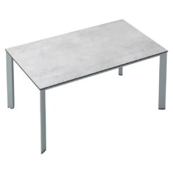 Aufgrund seines Gestells aus Aluminium zählt der Gartentisch Skate zu den modernen Tischmodellen, die sich im Garten und auf der Terrasse komfortabel aufstellen und bewegen lassen. Das robuste Kufengestell lässt sich hervorragend mit modernen Freischwingern und anderen Kufenmöbeln kombinieren. Die robuste Tischplatte aus leicht zu pflegendem HPL-Kunststoffverbund ist gerade für Gartenparties unter freiem Himmel und Mahlzeiten draußen außergewöhnlich gut geeignet. Für ein elegantes Gesamtbild erscheint die Platte in der Farbe Jura Anthrazit. Die rechteckige Form ermöglicht es Ihnen, den Gartentisch in Ecken und an Häuserwänden platzsparend einzusetzen.